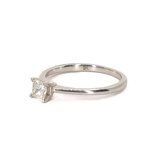 9ct W/G Princess Cut Diamond Solitaire Ring