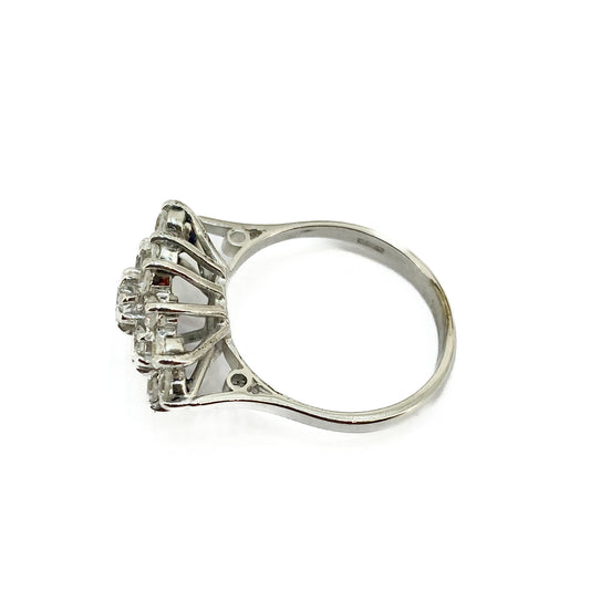 9ct White Gold CZ Set Boat Ring Pre Loved