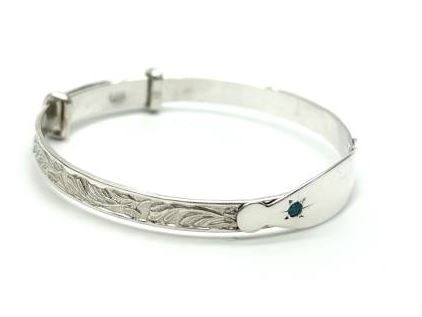 Sterling Silver Blue CZ Patterned Expanding Baby Bangle