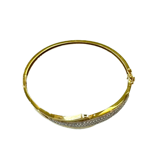 18ct Yellow Gold Pave CZ Set Hinged Bangle Pre Loved