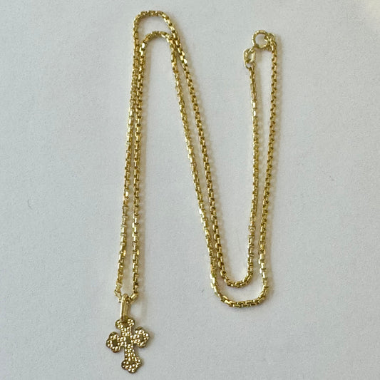 14ct Yellow Gold Small Patterned Cross and Fancy Box Link Chain Pre Loved
