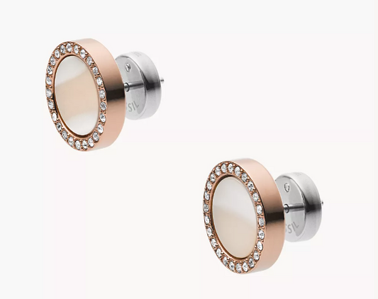 Fossil Stainless Steel Rose Gold Plated CZ Stud Earrings JF01831