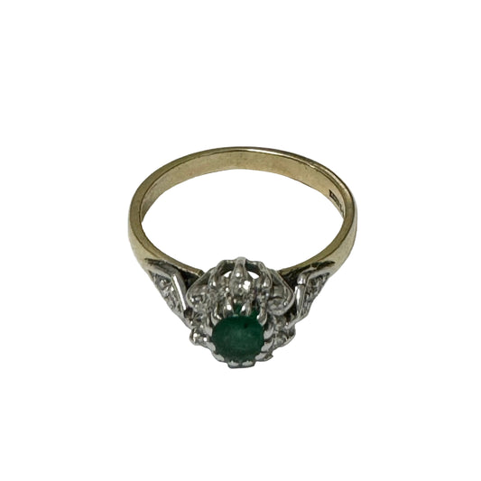 9ct Yellow Gold Emerald and Diamonds Set Cluster Ring Pre Loved