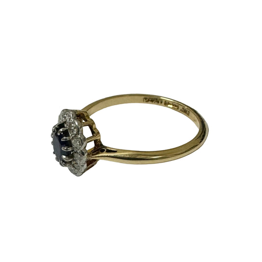 18ct Yellow Gold Sapphire and Diamond Cluster Ring Pre-Loved