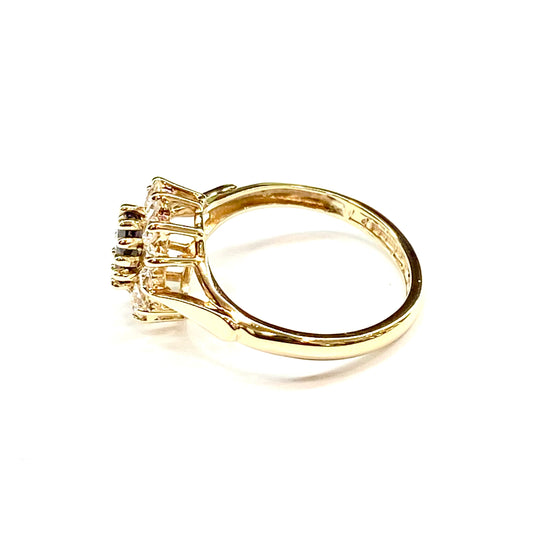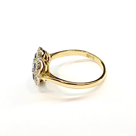 18ct Yellow Gold Sapphire and Diamond Cluster Ring Pre Loved