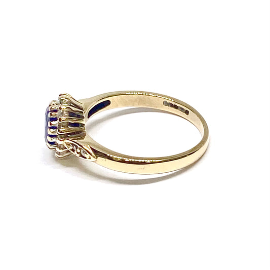 9ct Yellow Gold Sapphire and Diamonds Cluster Ring Pre Loved