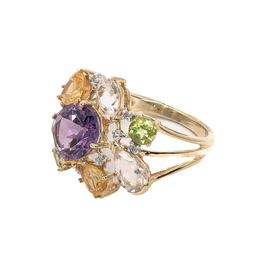 9ct Yellow Gold Multi-Coloured 8 Stone Ring Pre Loved