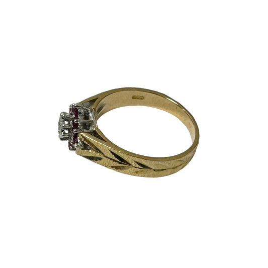 18ct Y/G Ruby/Diamond Cluster ring Preloved