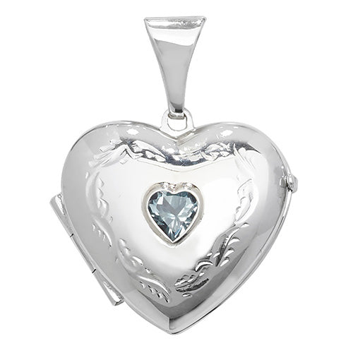 Silver Heart Patterned Locket Set With Gemstone
