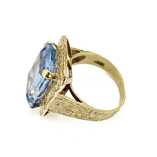 9ct Yellow Gold Large Rectangular Blue Topaz Set Ring Pre Loved