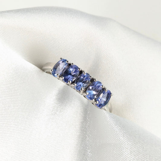 9ct White Gold 5 Tanzanite Set Ring - Pre-Loved