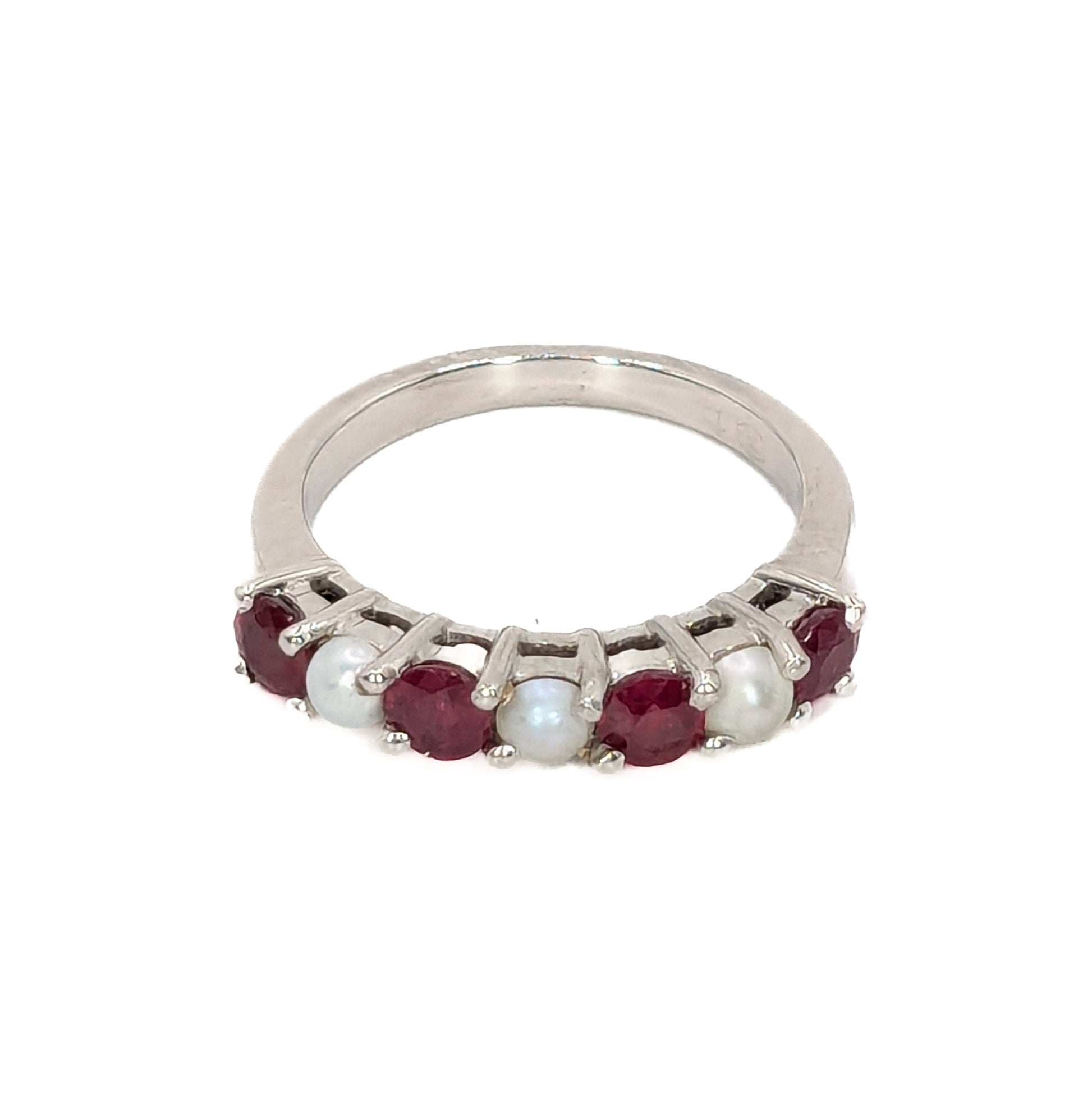 18ct White Gold Pearl and Rubies Set Ring Pre Loved