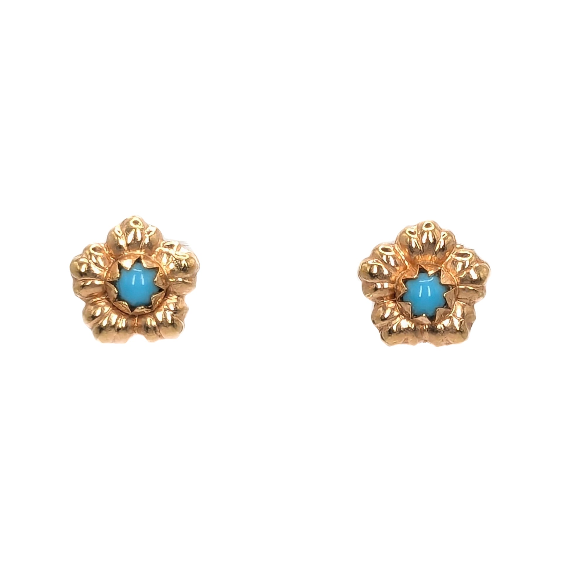 18ct Yellow Gold Turquoise Set Flower Stud Earrings Pre Loved