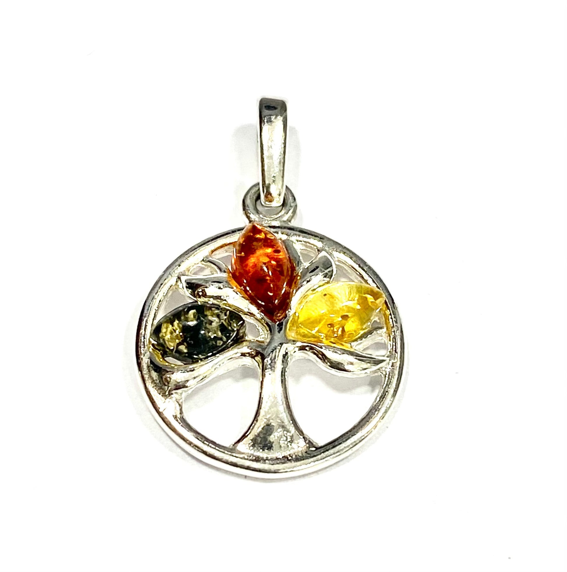 Silver Multi Coloured Amber Tree of Life Pendant