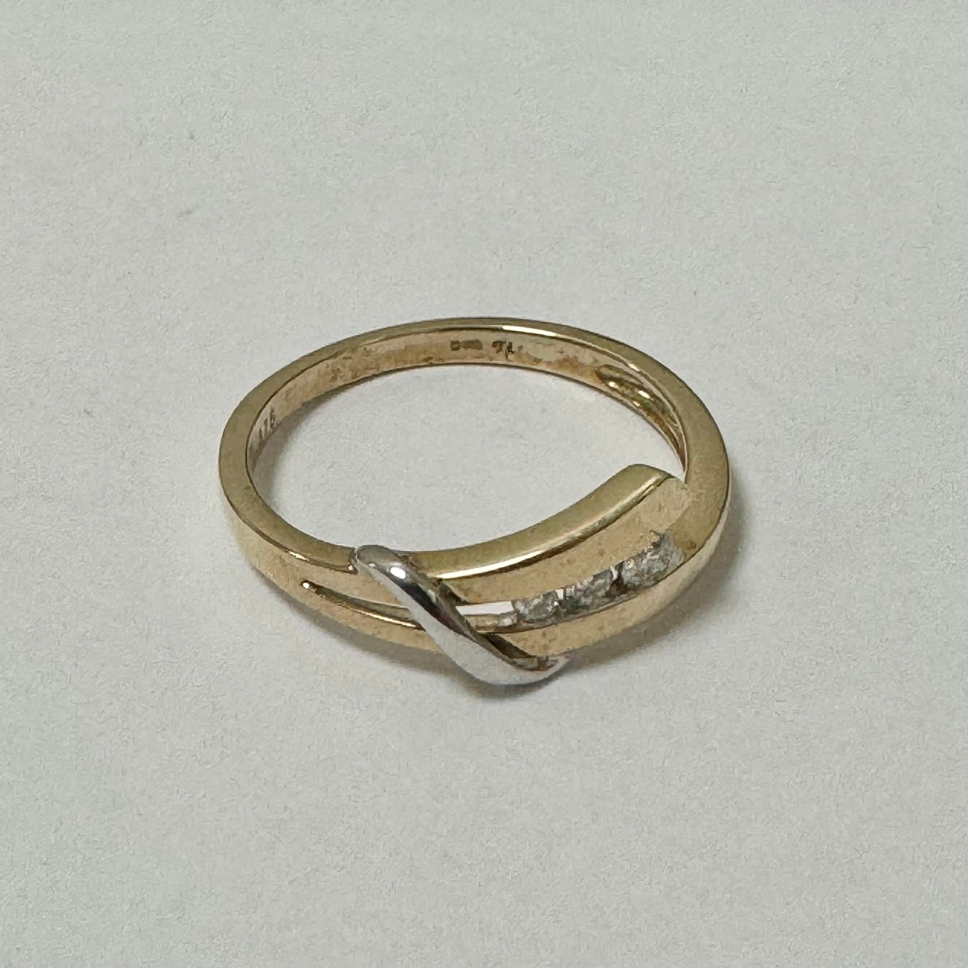 9ct Yellow and White Gold 3 Diamond Dress Ring Pre Loved