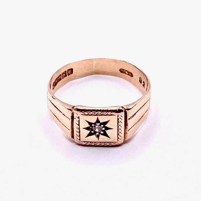 9ct Rose Gold Diamond Set Signet Ring Pre-Loved
