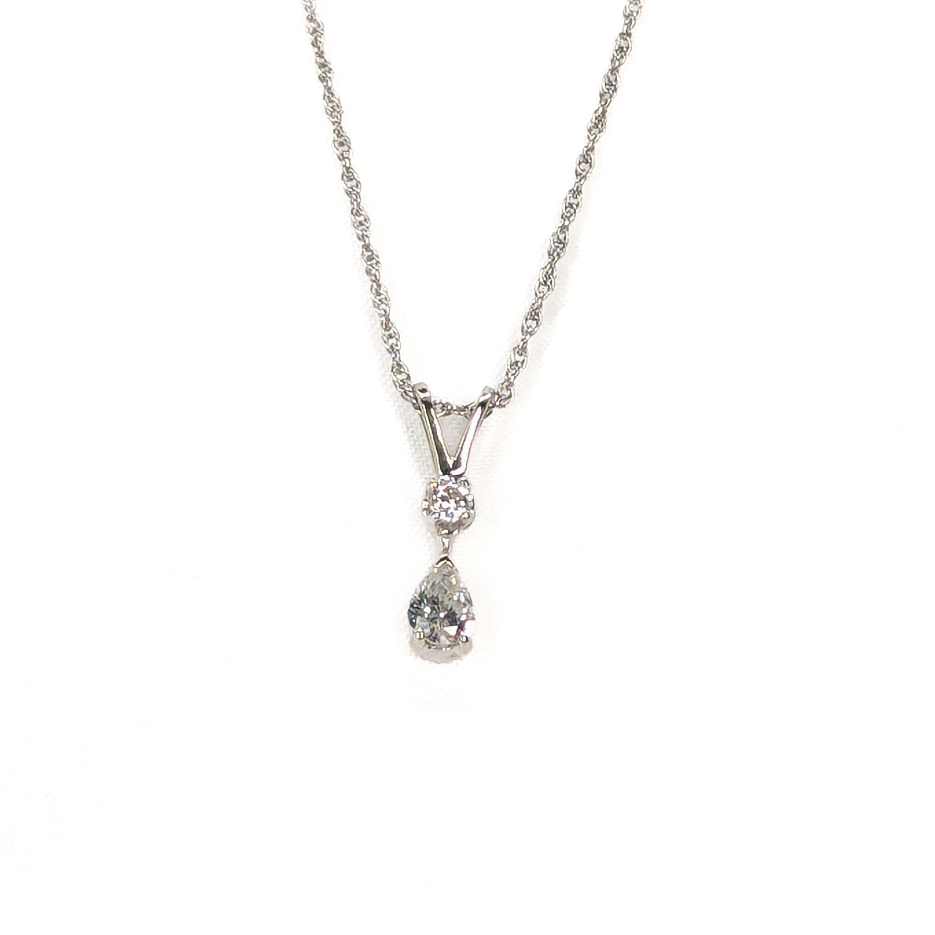 14ct w/g Diamond Set Pendant 15inch chain Pre-Loved