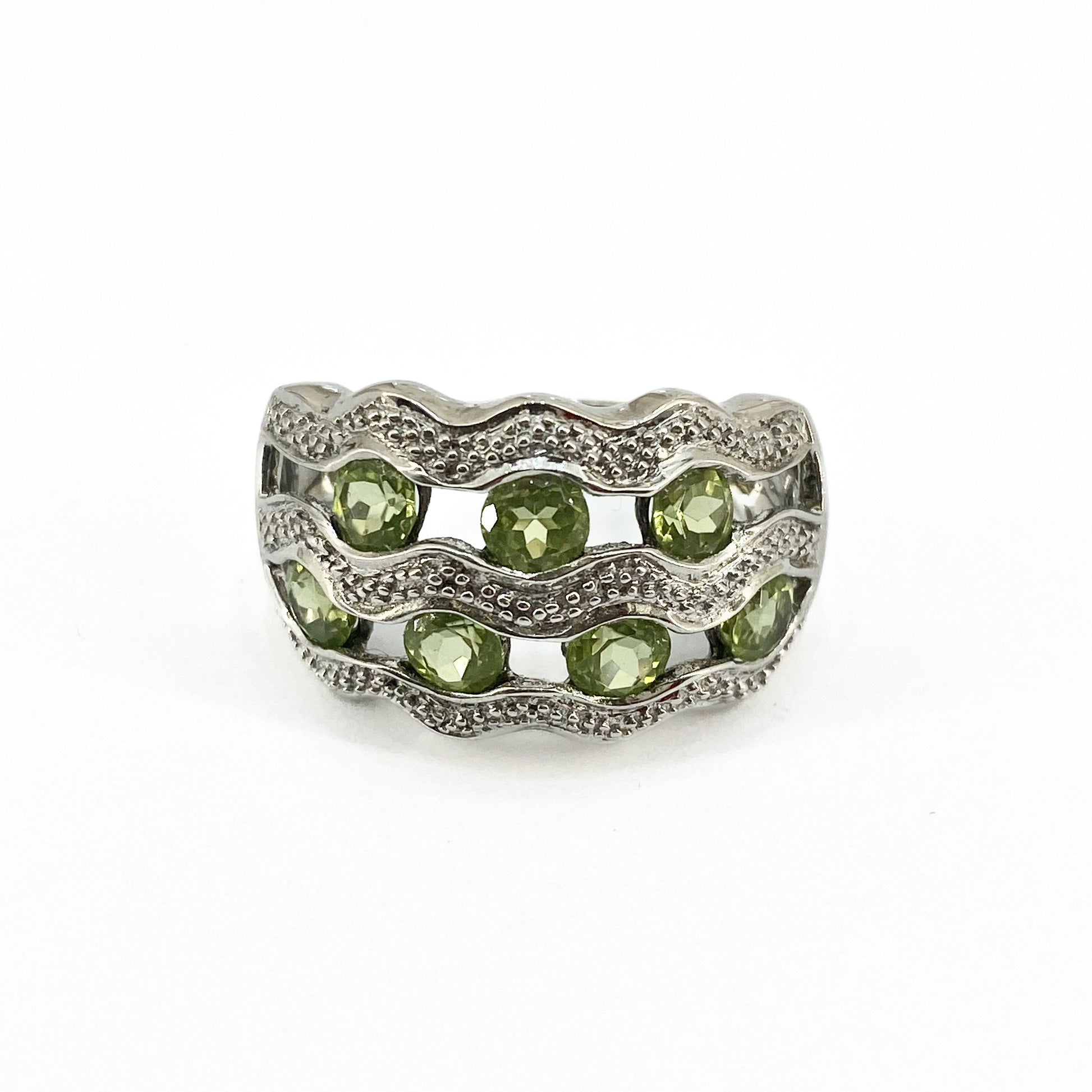 9ct White Gold Peridots Set Ring Pre Loved