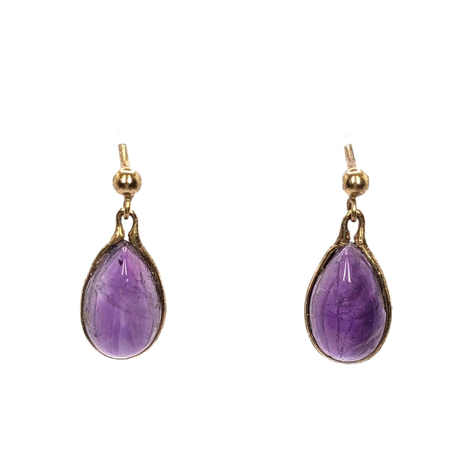 9ct Yellow Gold Amethyst Drop Earrings Pre loved