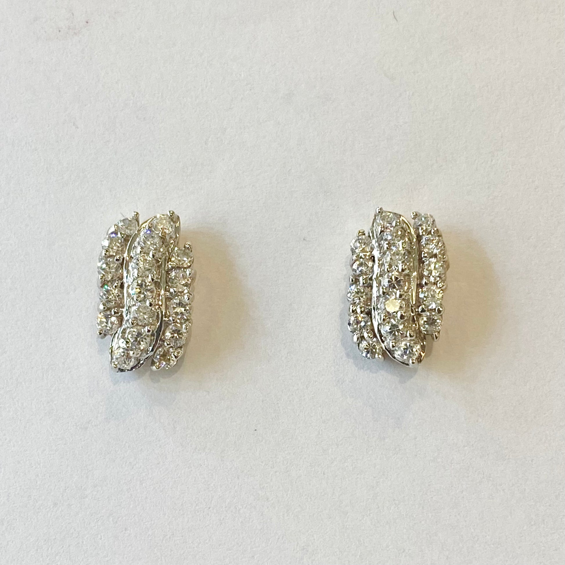 9ct Yellow Gold CZ Set Three Row Stud Earrings Pre-Loved