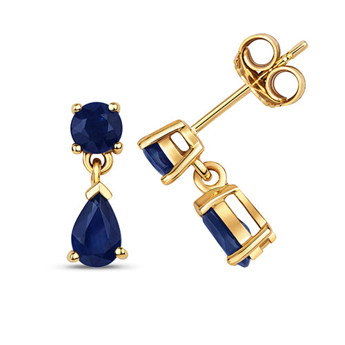 9ct Yellow Gold Sapphire & Pear Drop Earring