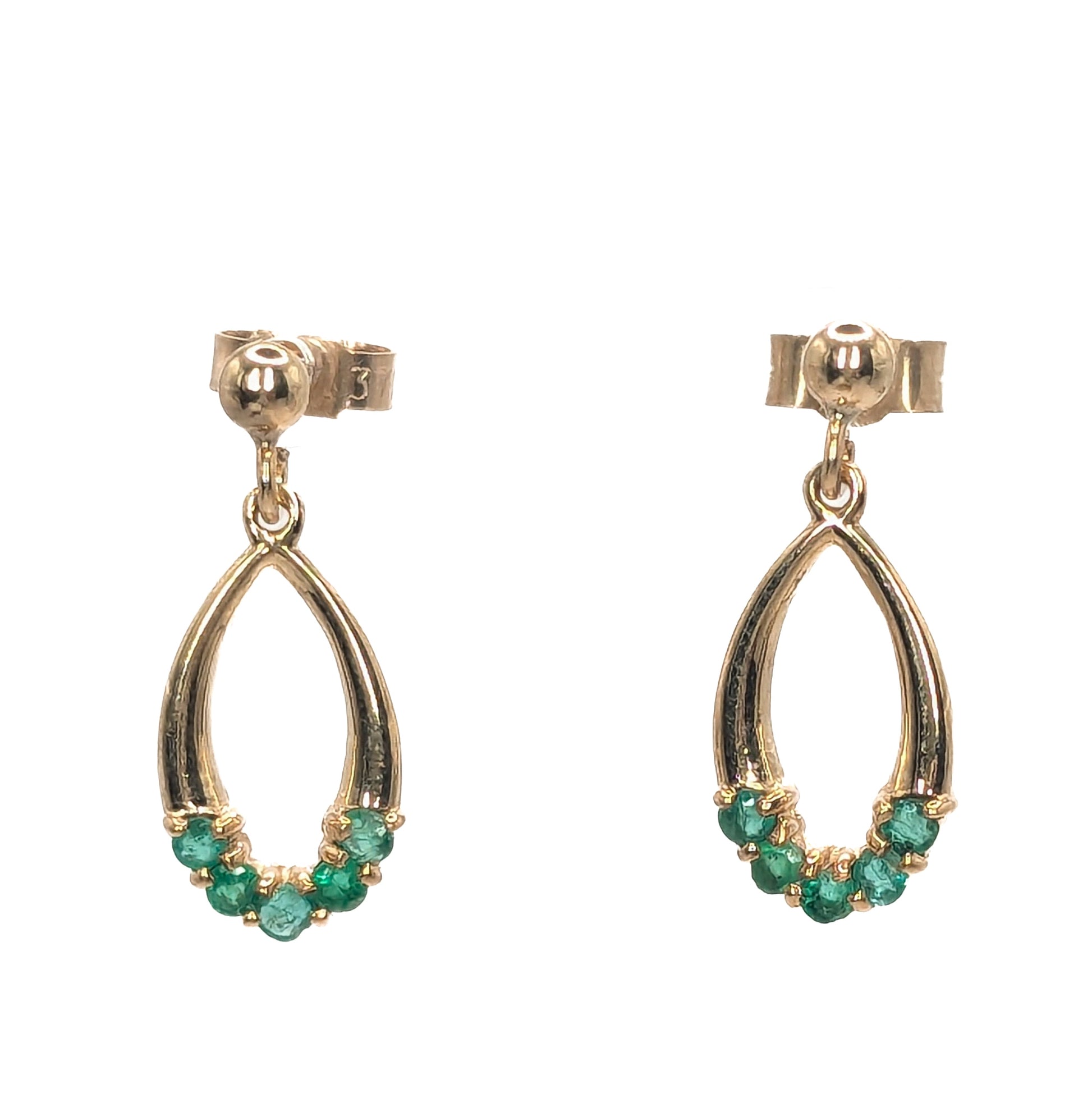 9ct Yellow Gold Emerald Set Drop Earrings Pre Loved