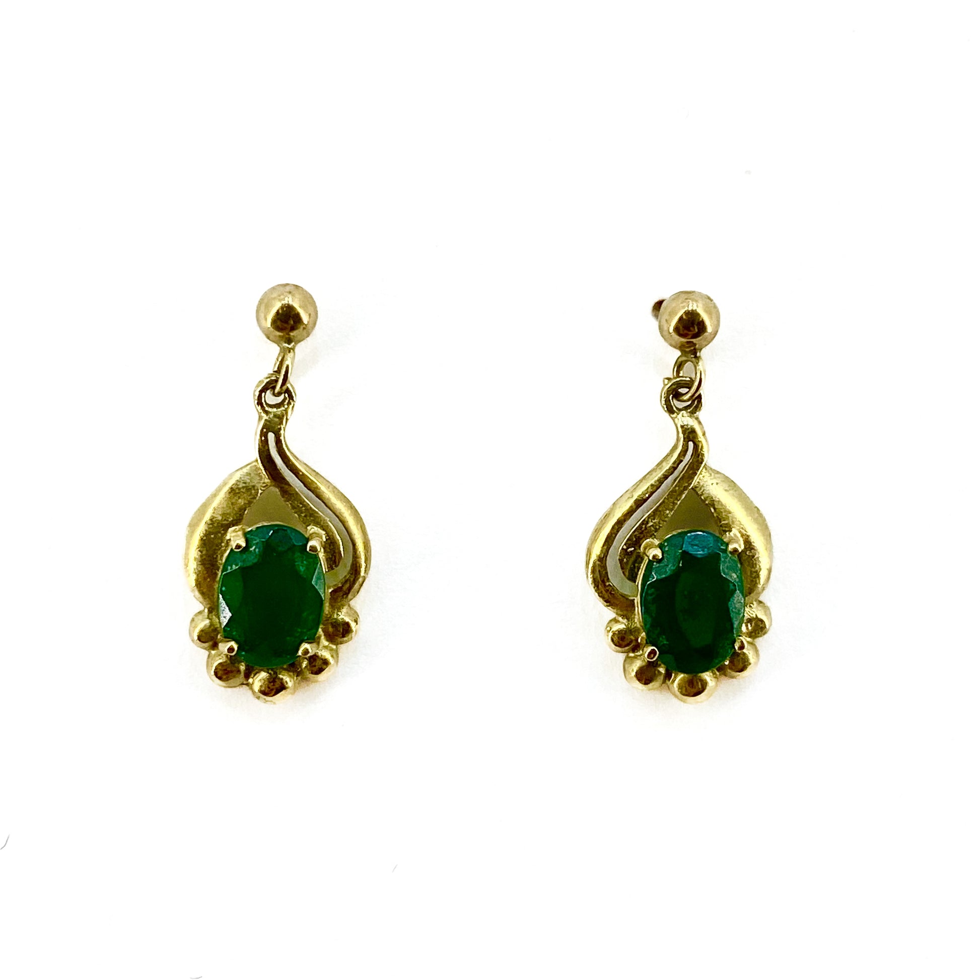 9ct Yellow Gold Emerald Set Drop Earrings Pre Loved