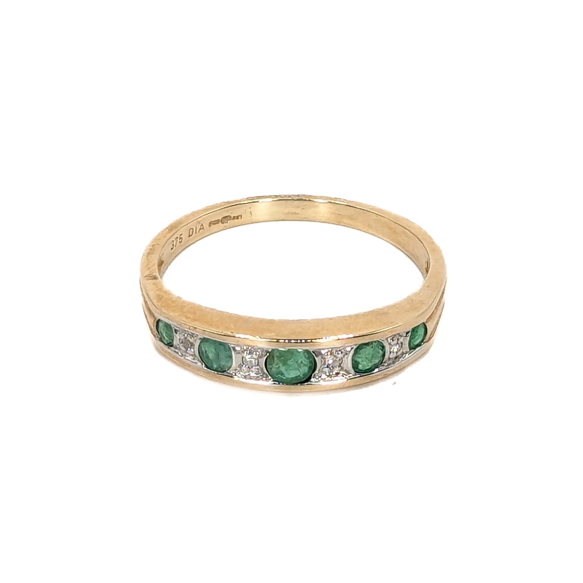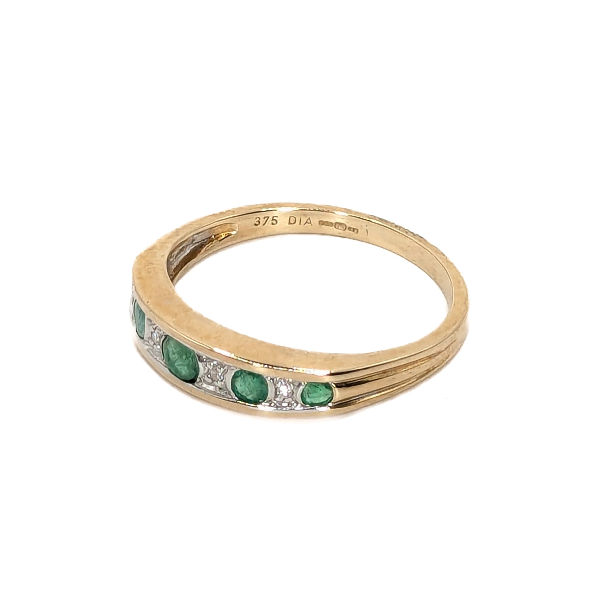 9ct Yellow Gold Emeralds and Diamonds Eternity Ring Pre-Loved
