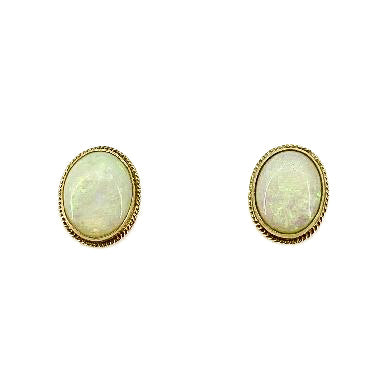 9ct Yellow Gold Opal Set Stud Earrings Pre Loved