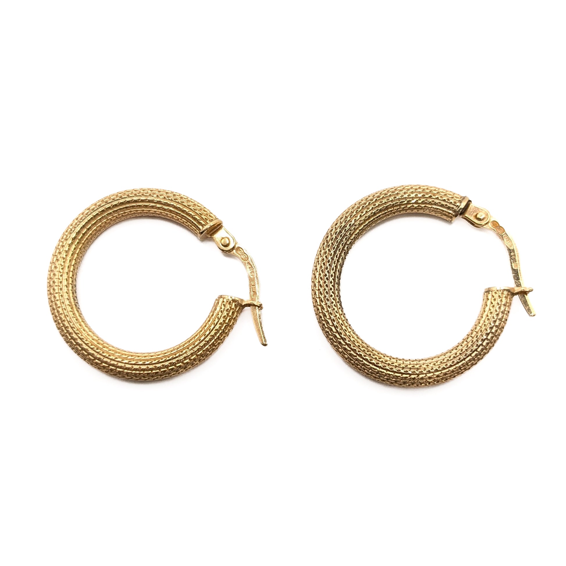 9ct Yellow Gold Pattern Hoop Earrings Pre Loved