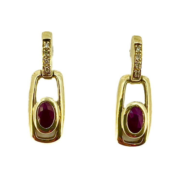 9ct Yellow Gold Ruby and Diamonds Set Dangle Stud Earrings Pre Loved