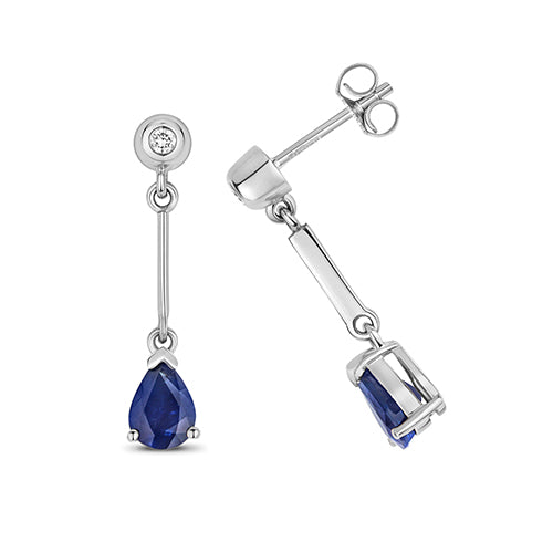 9ct White Gold Sapphire & Diamond Drop Earrings