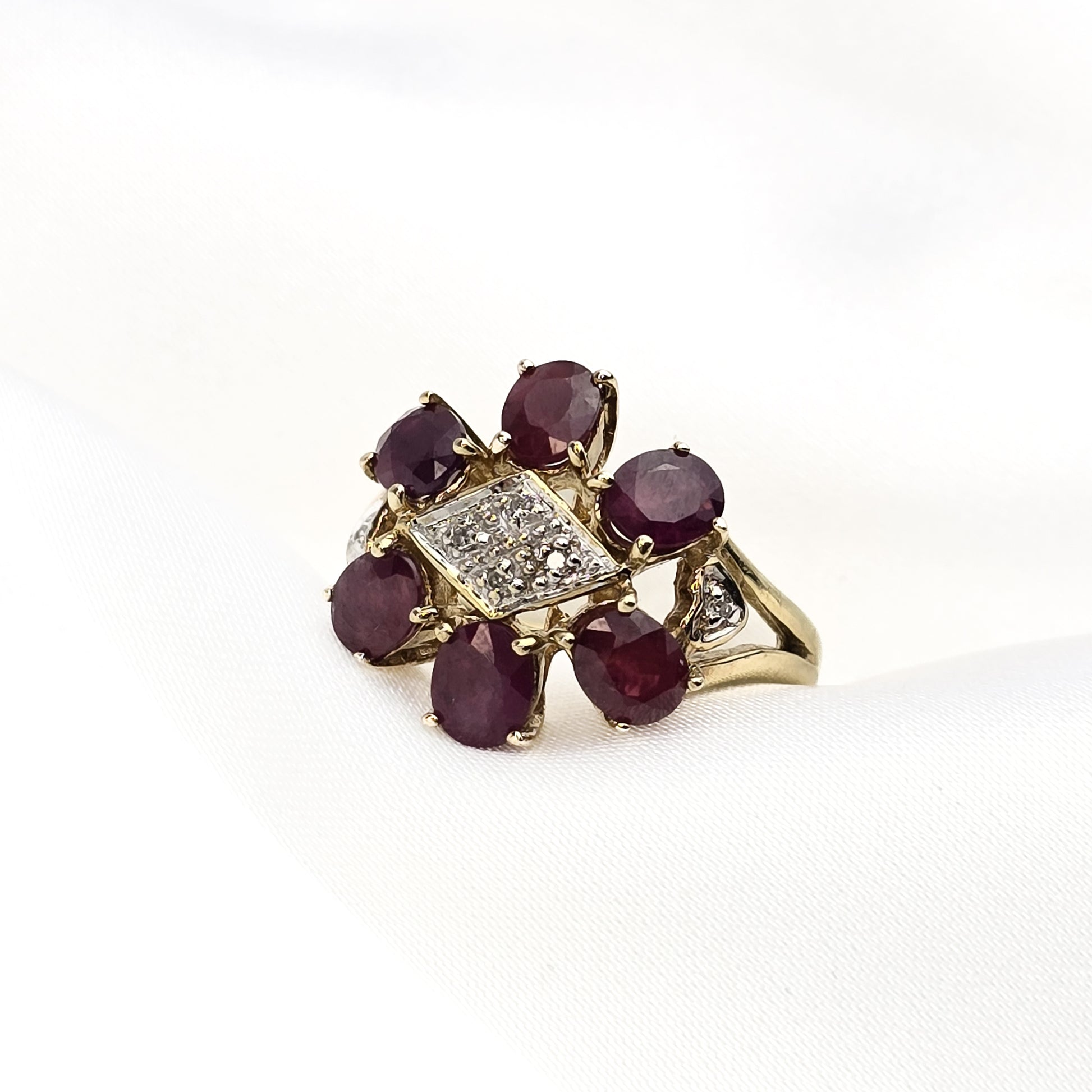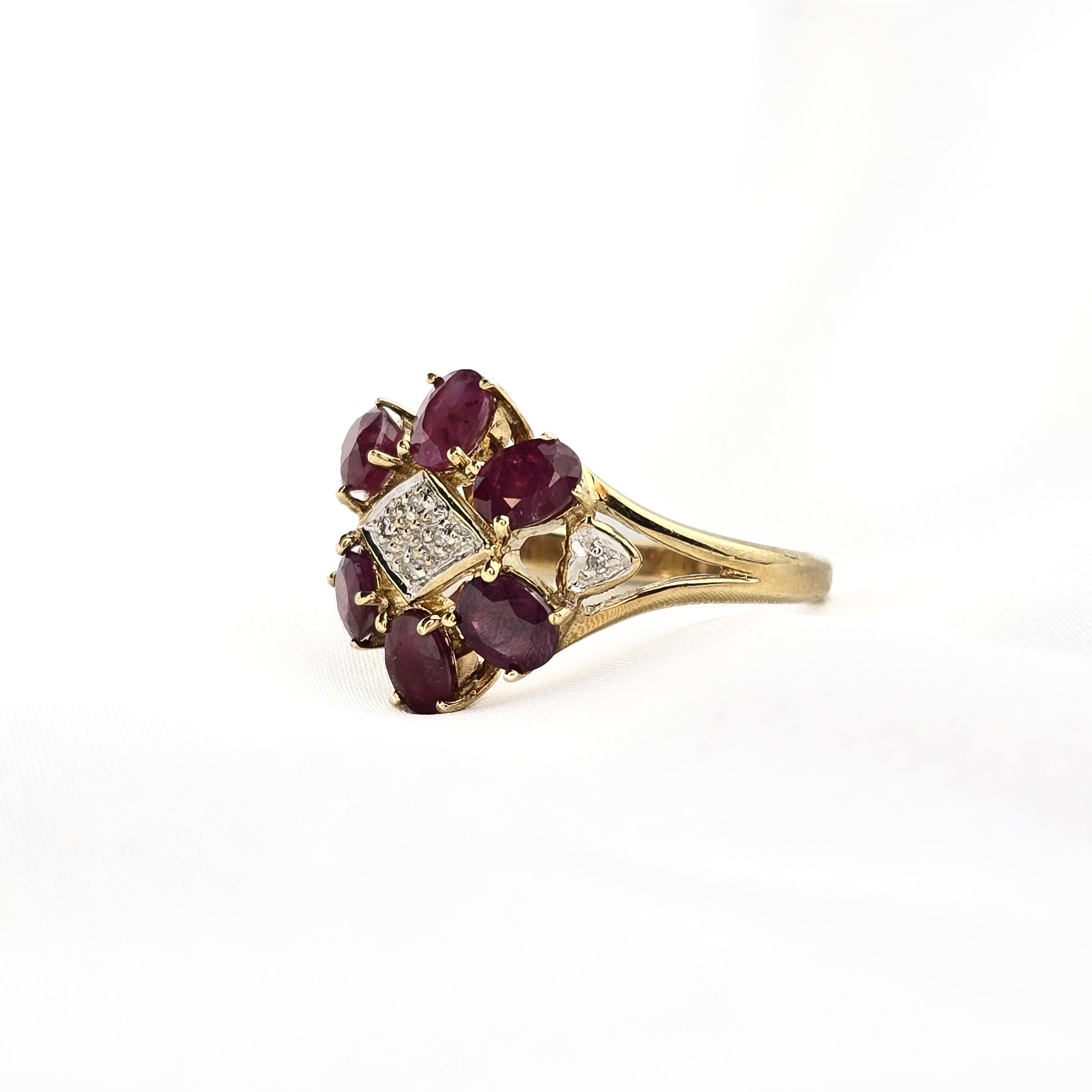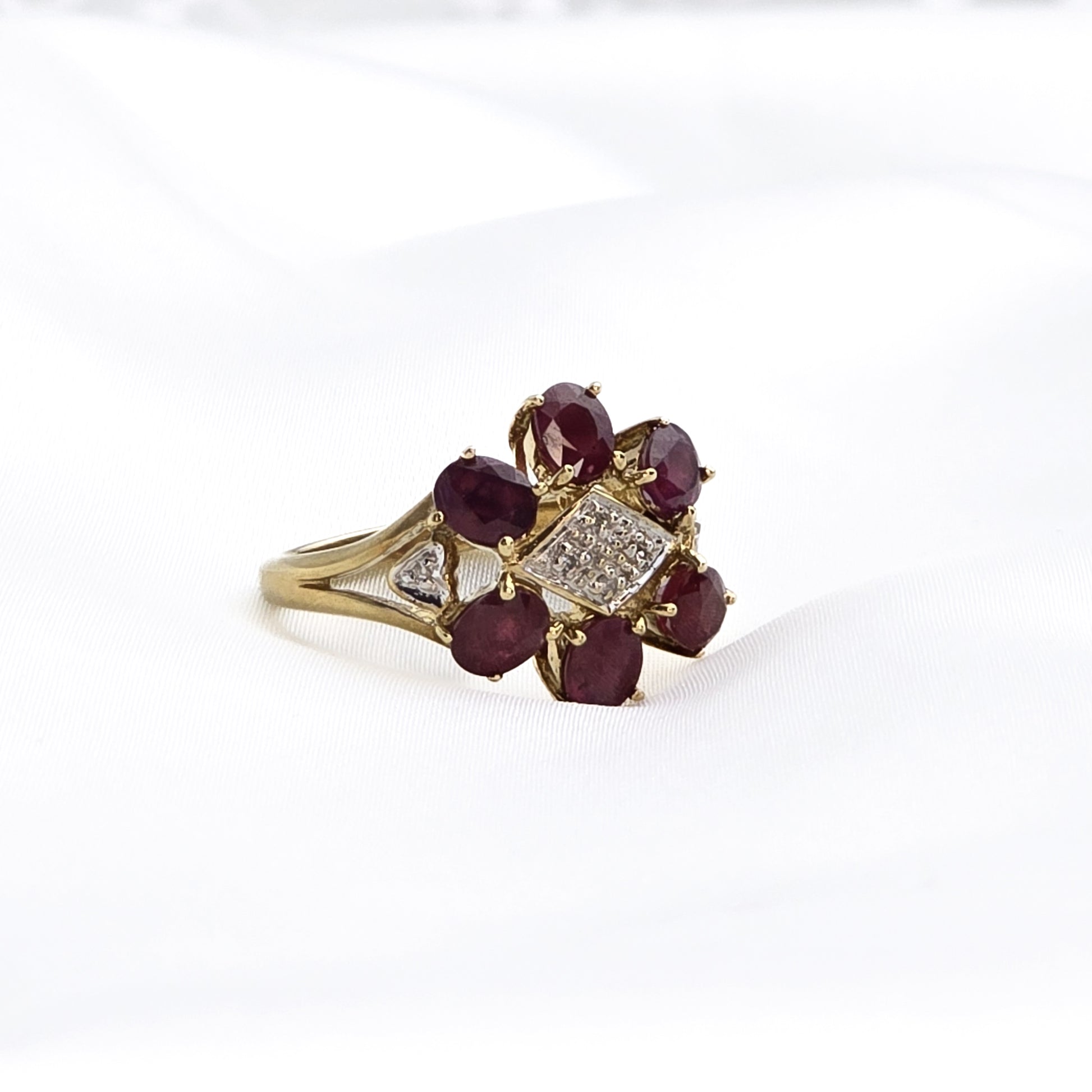 9ct Yellow Gold Ruby Cluster Ring Preloved