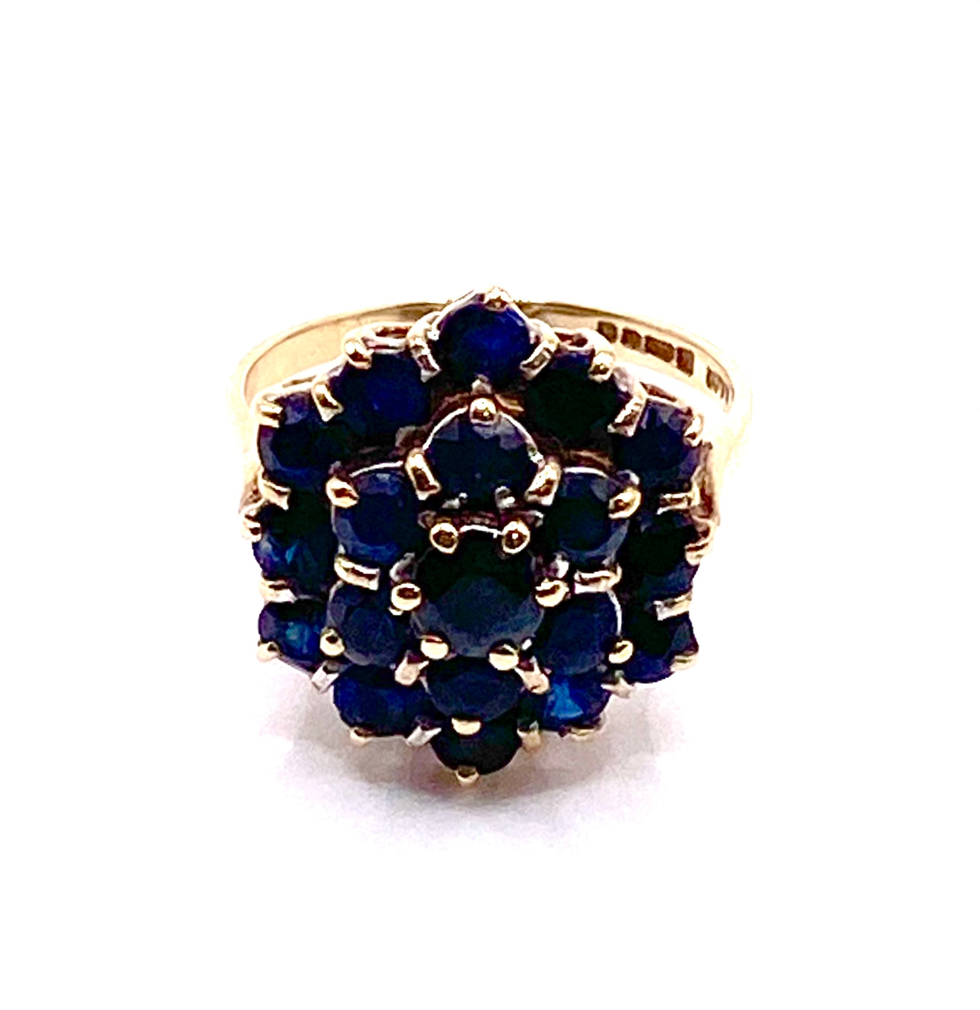 9ct Yellow Gold Sapphires Cluster Ring Pre Loved