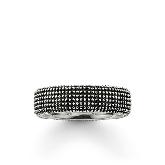 | Thomas Sabo Ladies Blackened Silver Beaded Ring TR2057-637-12-62 Size T |