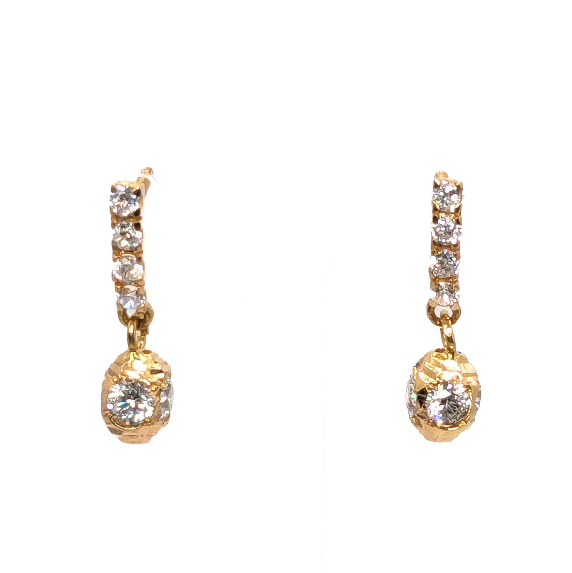18ct Yellow Gold CZ Set Drop Stud Earrings Pre-Loved