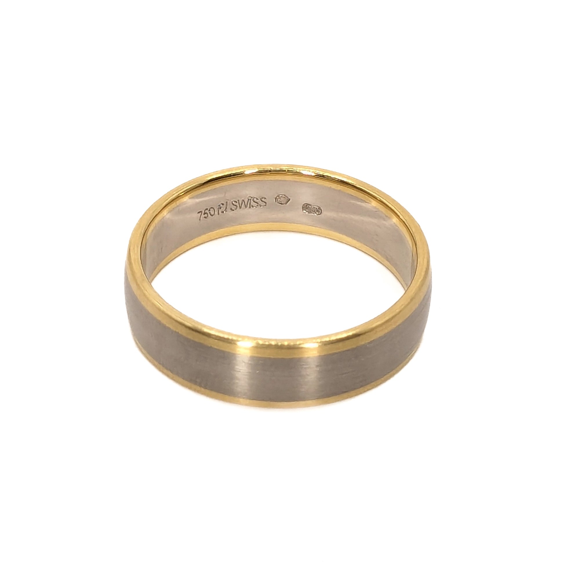 Furrer Jacot 6mm 2-Tone 18ct Gold Brushed Finish Wedding Ring