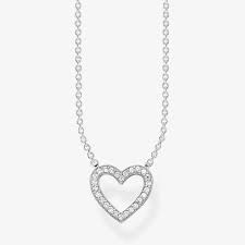 Thomas Sabo Sterling Silver Cubic Zirconia set small open Heart necklace
