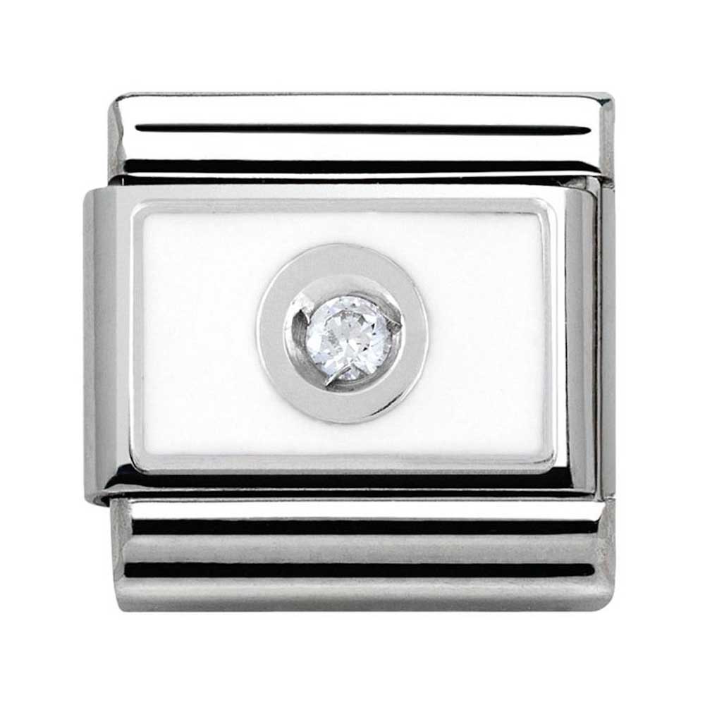 Nomination Classic Silvershine and Enamel White CZ Set White Enamel Plate Charm 330315/04