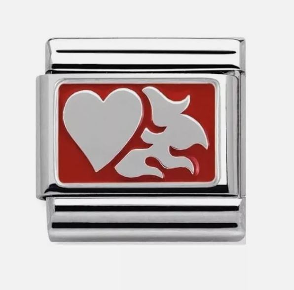 Nomination Classic Silvershine Oxidised and Red Enamel Flaming Heart Charm 330206/06
