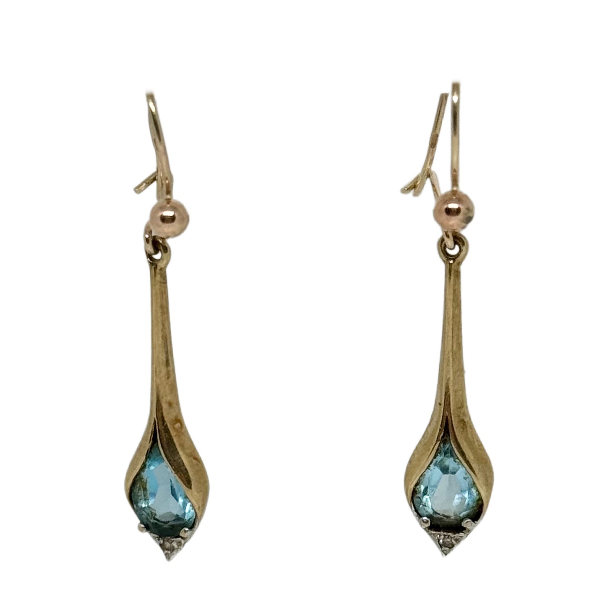 9ct Two Tone Yellow and White Gold Blue Topaz and Diamond Dangling Earrings Preloved