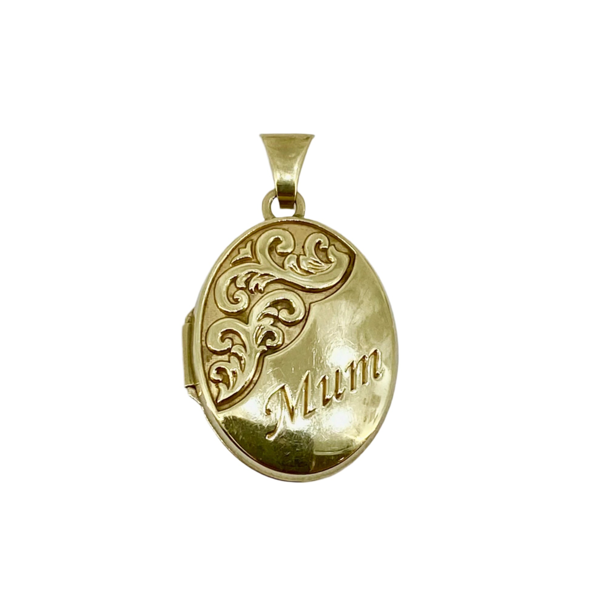 9ct Yellow Gold Oval Locket Engraved With “Mum” Pre Loved