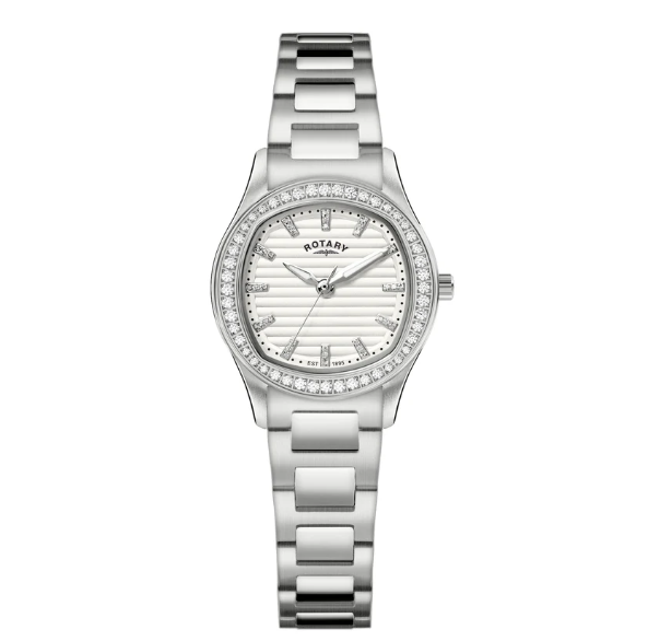 Rotary Ladies Brilliance Stainless Steel and Stone Set White Dial Bracelet Watch