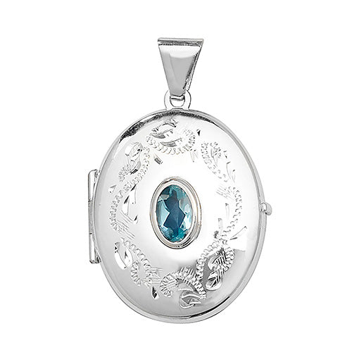 Silver Oval Patterned Locket Set With Gemstone