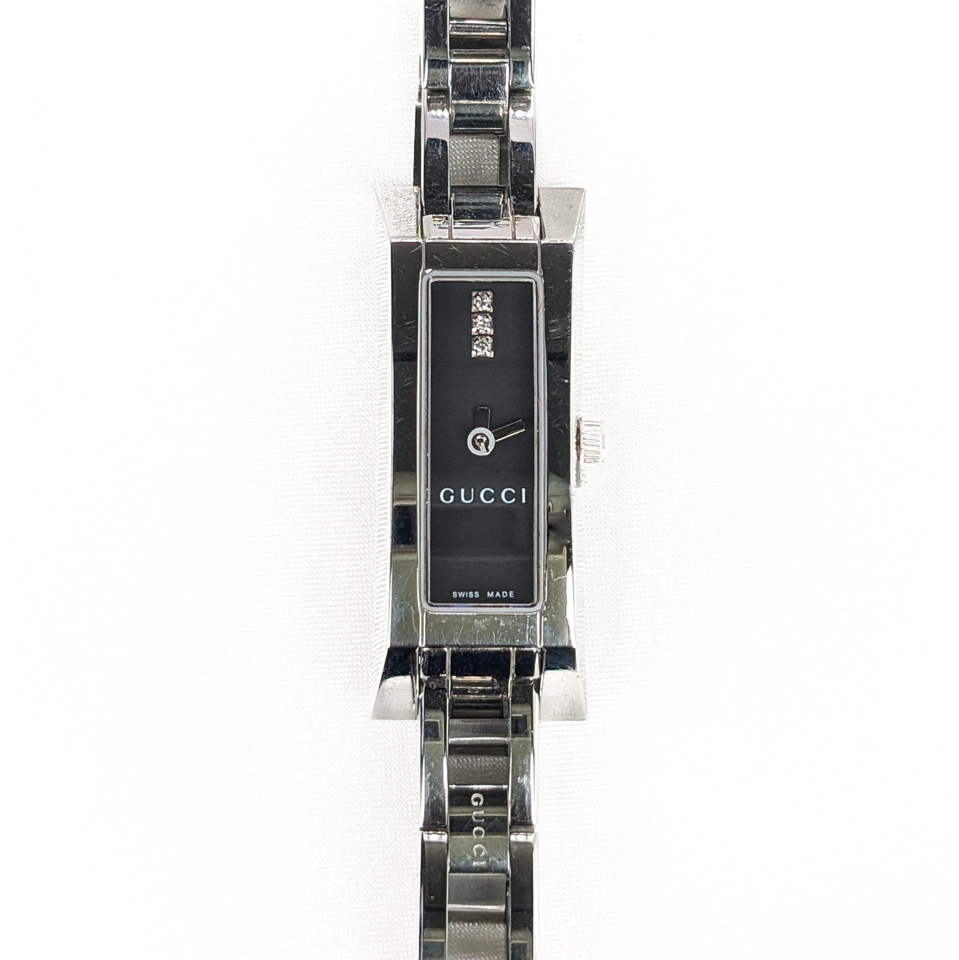 Gucci Ladies 110 Diamond Set Black Dial Stainless Steel Bracelet Watch Pre Loved